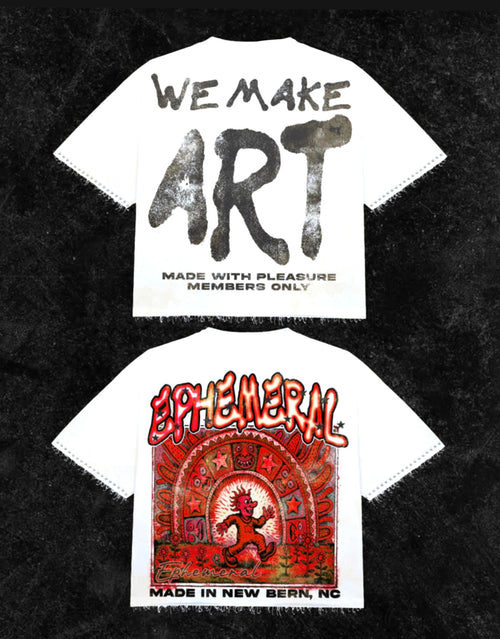 “We Make Art” Ephemeral tan T shirt